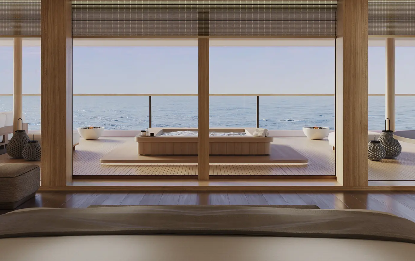 ![]() | Aman Suite Фірмовий люкс Amangati, до якого можна дістатися приватним ліфтом, займає площу 354 квадратних метри (3811 квадратних футів), є осередком спокою з власною масажною кімнатою та просторою терасою з приватним джакузі. Розташований у кормі на палубі 5. |